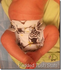 I bought this diaper from Sew Crafty Baby when I first had my son. My little guy was stuck in the 7 pound range for quite a while and is now almost 4 months and just shy of 13 pounds. The GroVia newborn diaper has worked very well for him. This diaper is normally saved for outings because, just like my OWL Rainshine Designs Newborn All-In-One, I love to show it off.